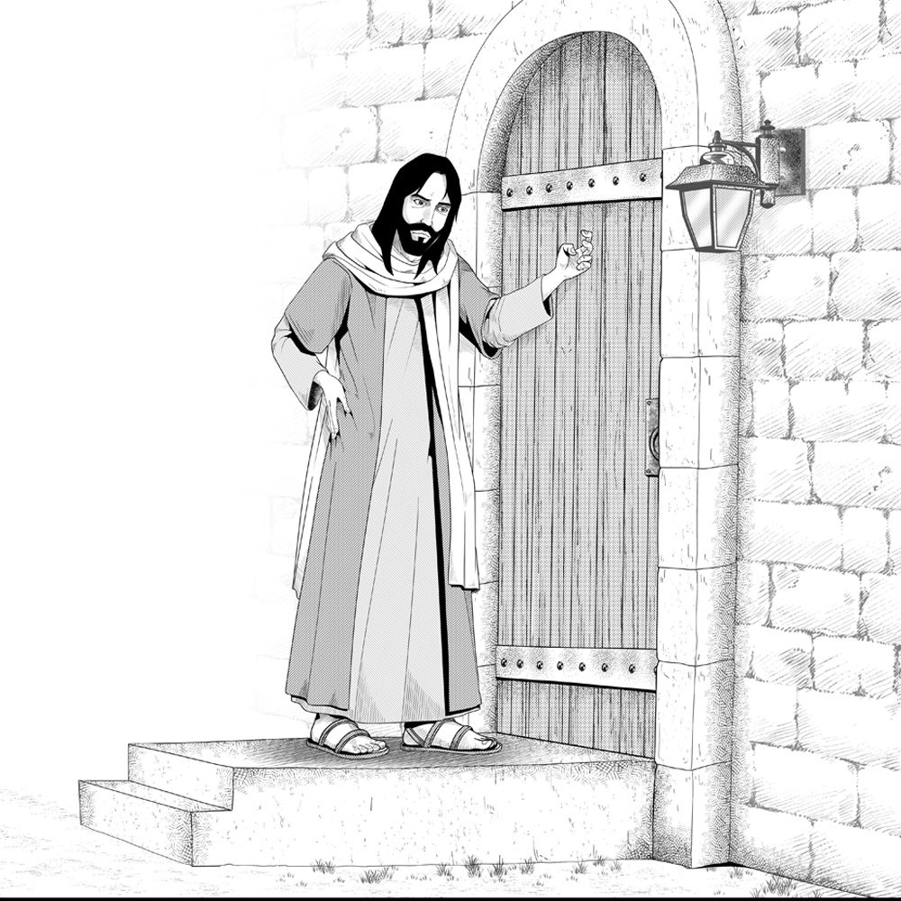 볼지어다 내가 문 밖에 서서 두드리노니 누구든지 내 음성을 듣고 문을 열면 내가 그에게로 들어가 그와 더불어 먹고 그는 나와 더불어 먹으리라 _요한계시록 3: 20