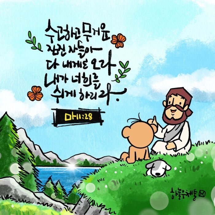수고하고 무거운 짐 진 자들아 다 내게로 오라 내가 너희를 쉬게 하리라 (마11:28)