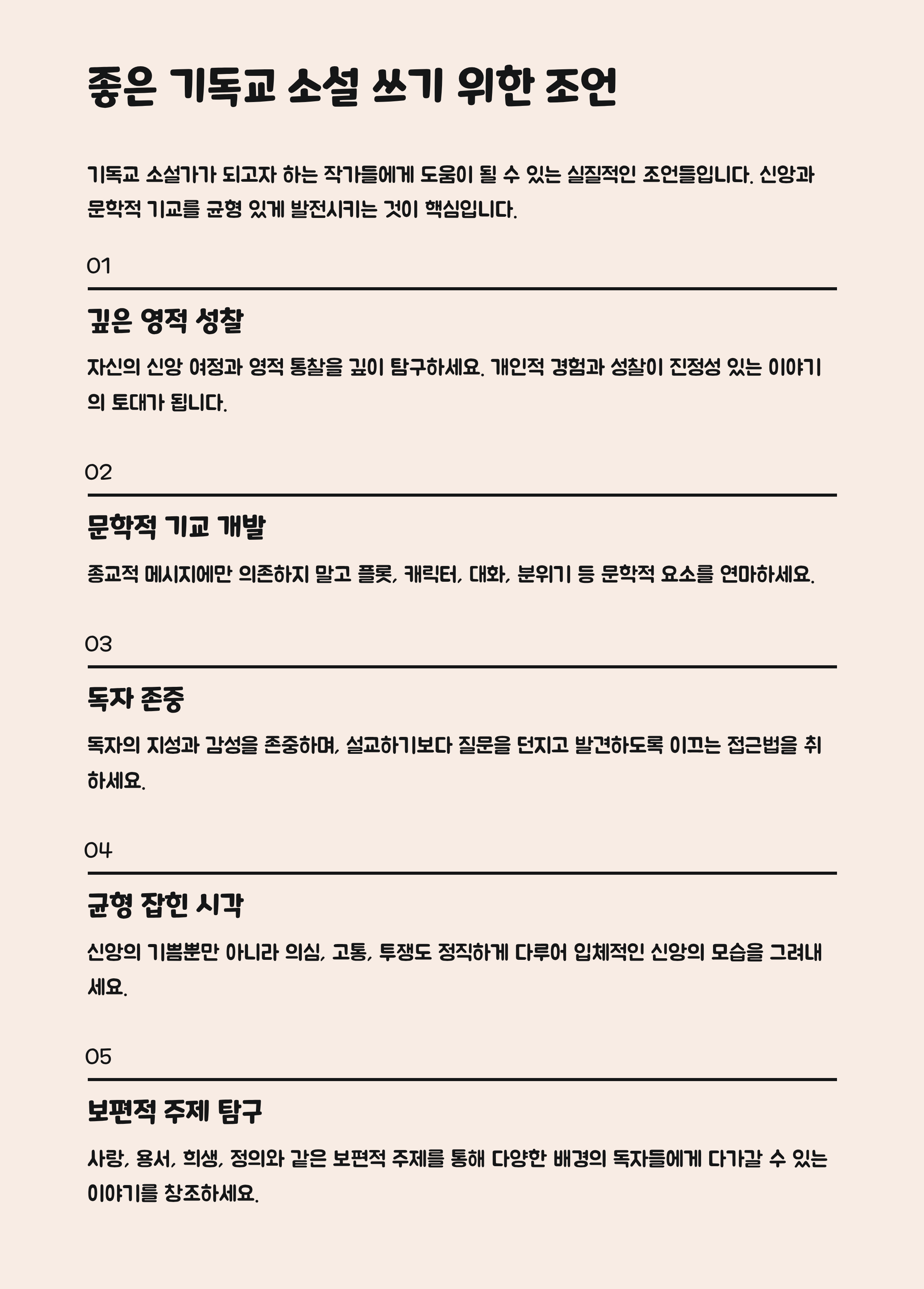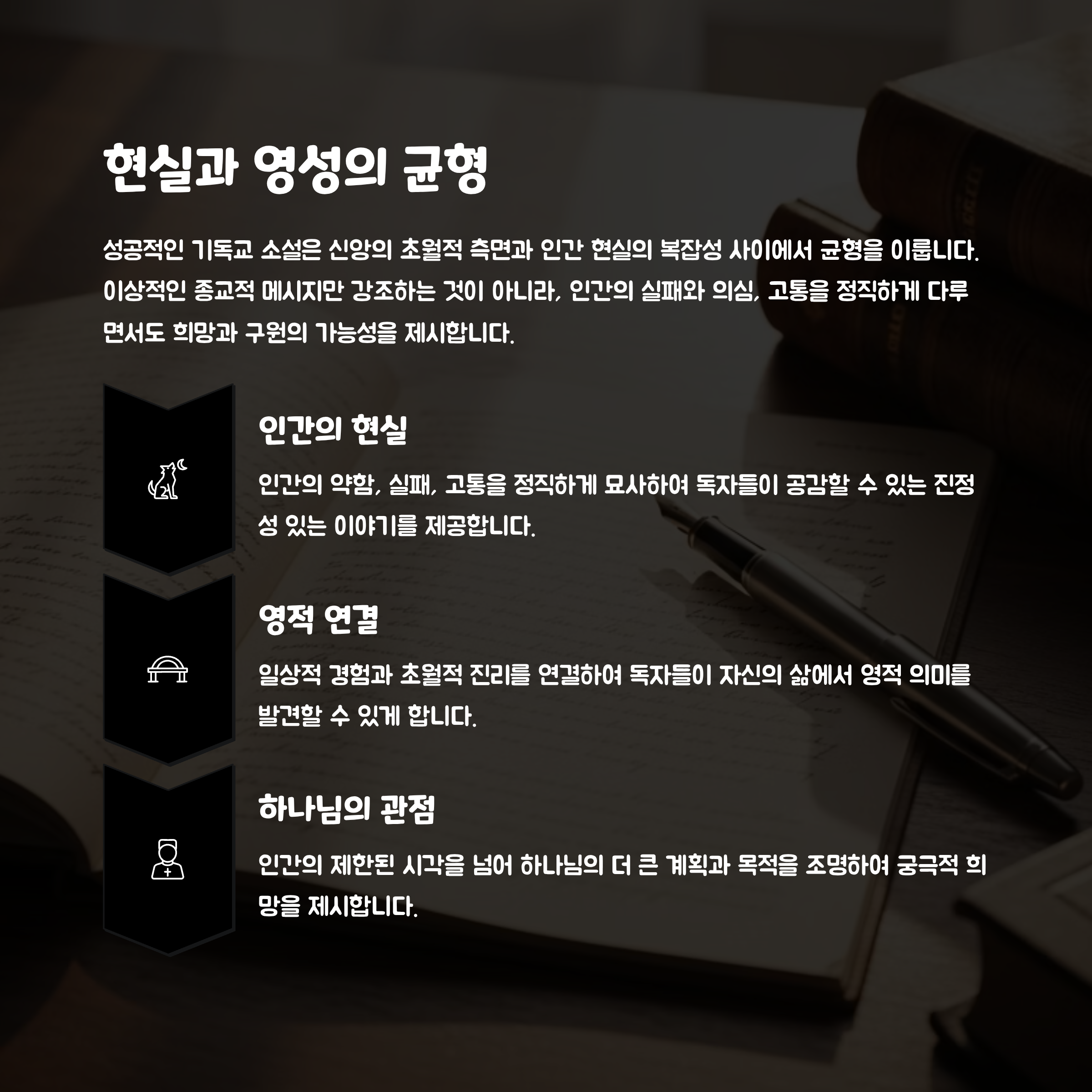 현실과 영성의 접점: 일상과 신앙의 균형을 다루어 공감을 이끌어냄.