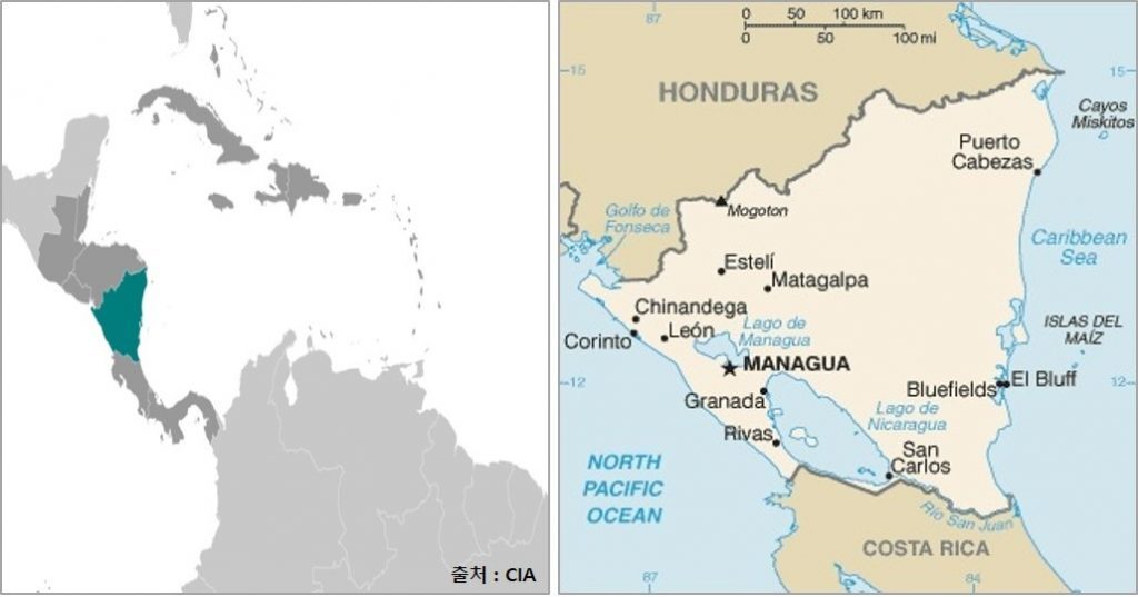 면적 l 130,370㎢(한국의 1.3배) 중앙아메리카 중앙부에 온두라스와 코스타리카 사이에 위치.