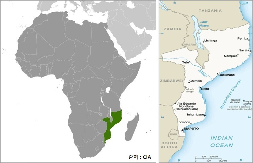 면적 l 799,380㎢(한국의 8배) 아프리카 대륙 동남부에 인도양을 연안에 위치.