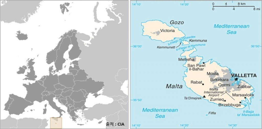면적 l 316㎢(제주도의 1/6) 유럽 남부 지중해에 이탈리아 시칠리섬 남쪽에 위치.