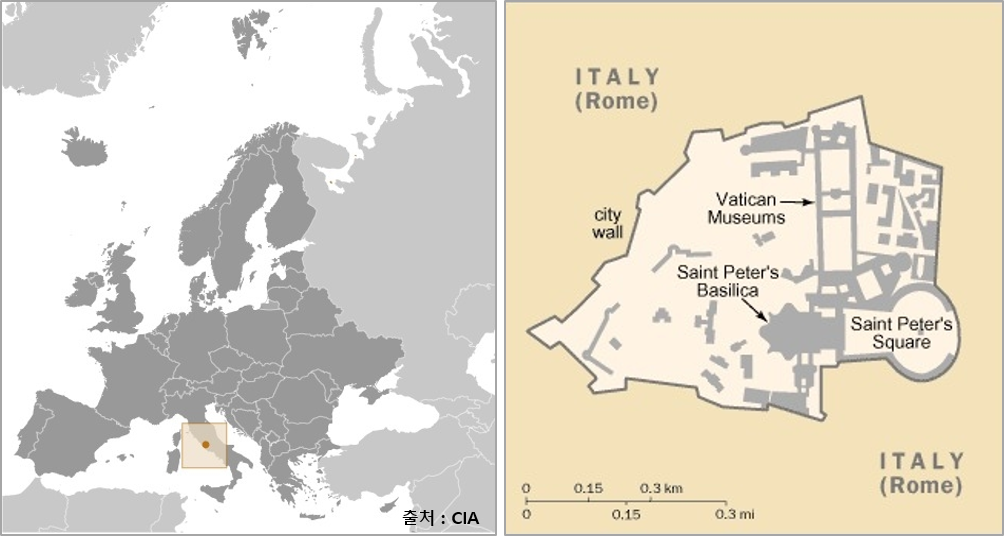 면적 l 0.5㎢ 이탈리아 로마 북서부에 있는 교황청이 통치하는 가톨릭 국가.