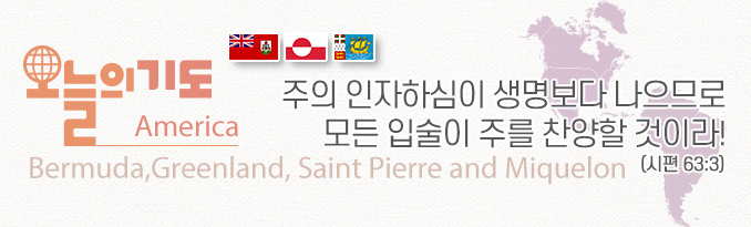 1. 버뮤다 복음주의 교회를 대표하는 목회자들이 모여 만든 단체인 변화를 위한 연합(United for Change)이 성도들에게 기도의 중요함을 강조하여 가르치고, 삶에서 거룩함을 이루도록 한목소리를 내고 있다. 그러나 그동안 교회가 연합하지 못했고, 부유한 사회에 영향력을 줄 수 없었다. 교회들을 십자가 복음으로 변화시키셔서 거룩하게 하시고, 천국을 소망하는 믿음으로 살아가도록 기도하자. 교회가 주의 인자하심이 생명보다 나으므로 주를 찬양하며 복음을 전파하도록 기도하자.