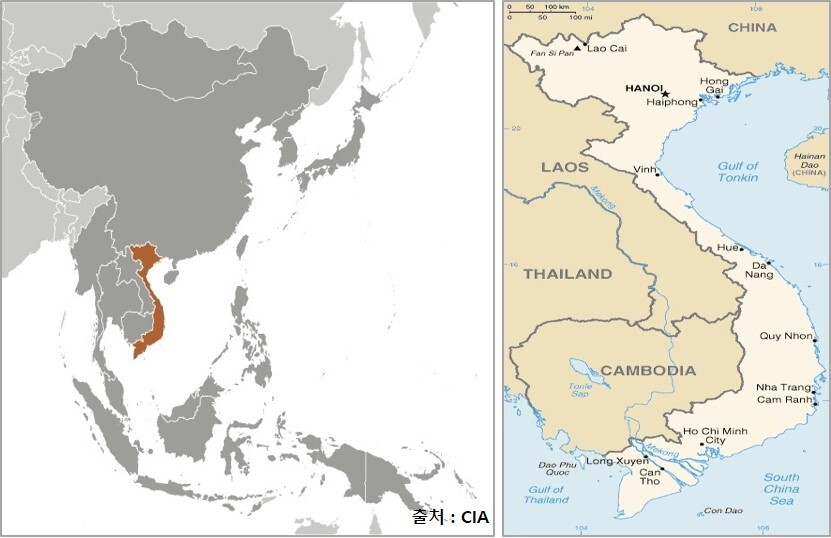면적 l 331,210㎢(한국의 3.3배) 동남아시아 인도차이나 반도 동부와 남부 해안선에 위치.