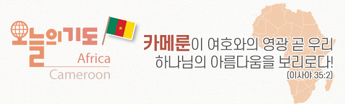 3. 인구의 20%인 영어권 주민들은 자신들이 차별을 받는 것에 대한 불만이 크다. 식민지 영향으로 불어와 영어 언어권으로 분열된 카메룬이 그리스도 안에서 아름다운 연합을 이루도록 기도하자. 분쟁지역의 교회가 상황을 두려워하지 않고 사람들의 피난처가 되도록 간구하자.