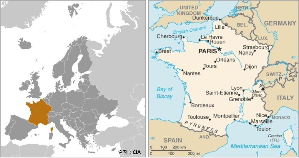 면적 l 549,970㎢(한국의 5.5배) 서유럽의 북대서양 연안에 위치.