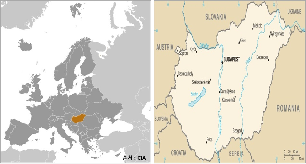 면적 l 93,028㎢(한국의 0.9배) 유럽 중동부 내륙 다뉴브강 상류에 위치.