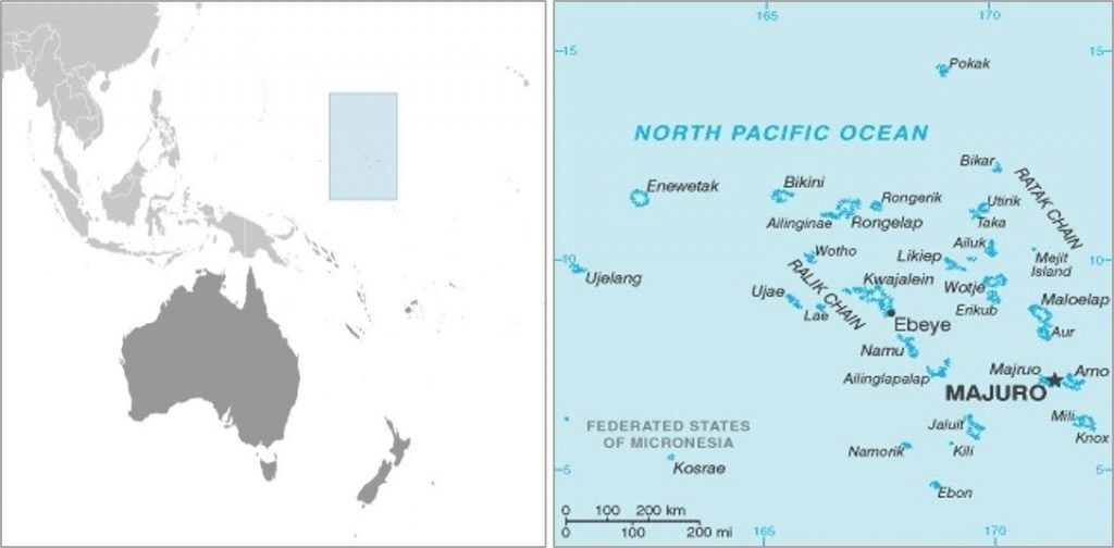 마셜 제도는 1526년에 스페인 배에 의해 처음 발견되었고 1592년 스페인령이 되었다. 1788년 이 섬에 방문한 영국 선장 존 마셜(John Marshall)의 이름을 따서 마셜 제도로 알려졌다. 1820년대 이후 포경선, 무역업자, 노예상인들이 섬을 찾아왔으며, 원주민과의 충돌이 빚어지기도 했다. 1857년 이래 미국 개신교 선교사들이 선교 활동을 전개함에 따라 점차로 마셜인들의 기독교 개종이 이루어지고 추장의 권위가 약해지는 등 전통사회가 변화를 겪게 되었다. 1886년 독일 보호령이 되었으나 독일 정부의 주요 관심은 코프라(코코넛) 무역에 있었으며, 1906년이 되어서야 독일로부터 행정 관료가 마셜 제도에 직접 파견되었다. 제1차 세계대전이 시작된 1914년 일본군에 의하여 점령되었다. 1947년 미국의 신탁통치하에 놓이게 되어 비키니 섬과 에니웨톡 섬이 미국의 핵실험장이었으며, 이후에는 콰잘레인 섬을 미사일 실험 목표물로 제공하고 있다. 1982년 미국과 자유연합협정을 체결하고 1986년 협정이 발효되면서 사실상의 독립을 획득하였다. 대통령제와 의회제의 혼합 제도이며, 데이비드 캅 대통령이 2020년부터 4년 임기로 재임 중이다.