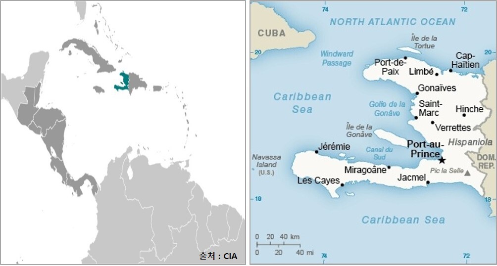 면적 l 27,750㎢(한국의 1/4배) 카리브해 히스파니올라 섬 서쪽 1/3 정도를 차지.