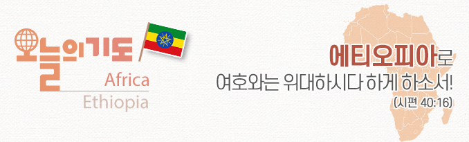 해외 선교사들과 교회들이 더욱 연합하여 미전도종족, 청년과 다음세대, 가난하고 병든 사람들을 돌보며 복음의 통로가 되도록 기도하자. 주님의 인자와 진리로 항상 교회들을 보호하시고, ‘아프리카의 뿔’ 지역의 주변 나라와 열방으로까지 선교하는 나라가 되도록 기도하자.
