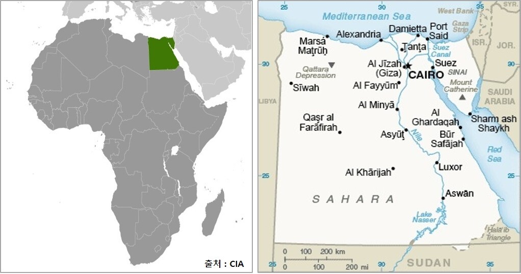 면적 l 1,001,450㎢(한국의 10배) 아프리카 동북부에 지중해와 홍해 연안에 위치.