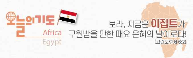 이집트 교회에 선교와 복음 전도에 대한 비전이 자라났고, 이미 서구와 중동에 살고 있는 수백만 명의 기독교 사역자들이 깨어 순종할 수 있도록 기도하자. 이들을 통해 중동 이슬람권에 선교를 감당하여 지금이 은혜받을 만한 때요 구원의 날임을 믿음으로 담대히 무슬림에게 십자가의 도를 전하도록 기도하자.