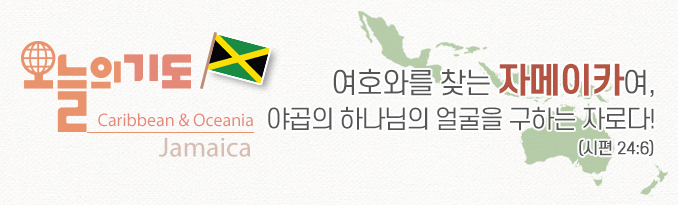 자메이카 교회들이 세속적이고 불경건한 삶을 회개하여 손이 깨끗하며 마음이 청결하며 뜻을 허탄한 데에 두지 아니하며 거짓 맹세하지 아니하는 자들로 새로워지도록 기도하자. 그리하여 여호와를 찾는 자메이카가 하나님의 얼굴을 구하여 복음으로 충분한 나라가 되도록 기도하자.