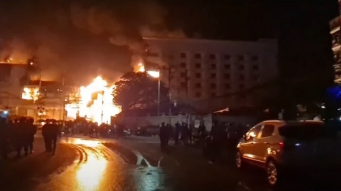 소셜미디어(SNS)에 공개된 화재 영상에는 대규모 카지노 호텔 단지가 화염에 휩싸여 있고, 일부 사람들이 불을 피해 건물 밖으로 뛰어내리는 듯한 모습도 보인다. 태국에서 파견된 구조단체 자원봉사자는 1층에서 시작된 불길이 카펫을 타고 건물 전체로 빠르게 번졌다고 전했다.