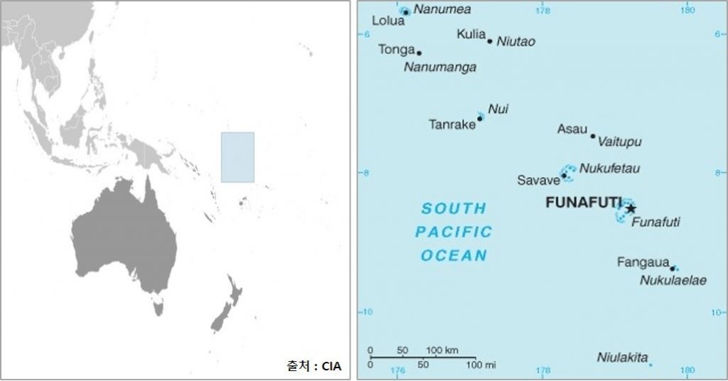 면적 l 26㎢(울릉도의 1/3배) 남태평양 적도 부근에 9개로 된 낮은 산호섬과 작은 섬들로 구성.