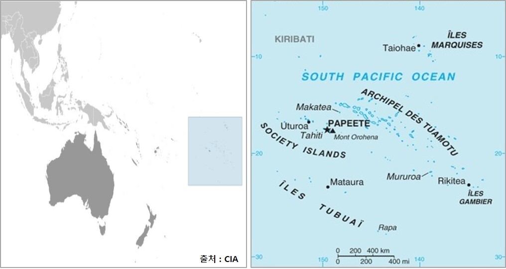 프랑스령 폴리네시아는 남태평양에 위치한 프랑스의 해외 집합체이다. 1520년에 마젤란이 섬을 본 최초의 유럽인이었다. 19세기에 ‘타히티 왕국’등 제도들마다 소왕국들이 있었으나, 프랑스 세력이 이 국가들을 점차 합병해 프랑스령 폴리네시아를 만들었다. 섬 주민에게는 프랑스 시민권을 부여하며 해외 영토로 분류한다. 1995년 프랑스는 3년간의 유예기간을 거쳐 핵 실험을 재개함으로써 국제 사회의 광범위한 시위를 촉발시켰다. 이 실험은 1996년에 중단되었다. 프랑스령 자치 공화국으로 프랑스 대통령이 국가원수이며 에두아르 프리치가 2014년부터 자치 대통령으로 연임 중이다.