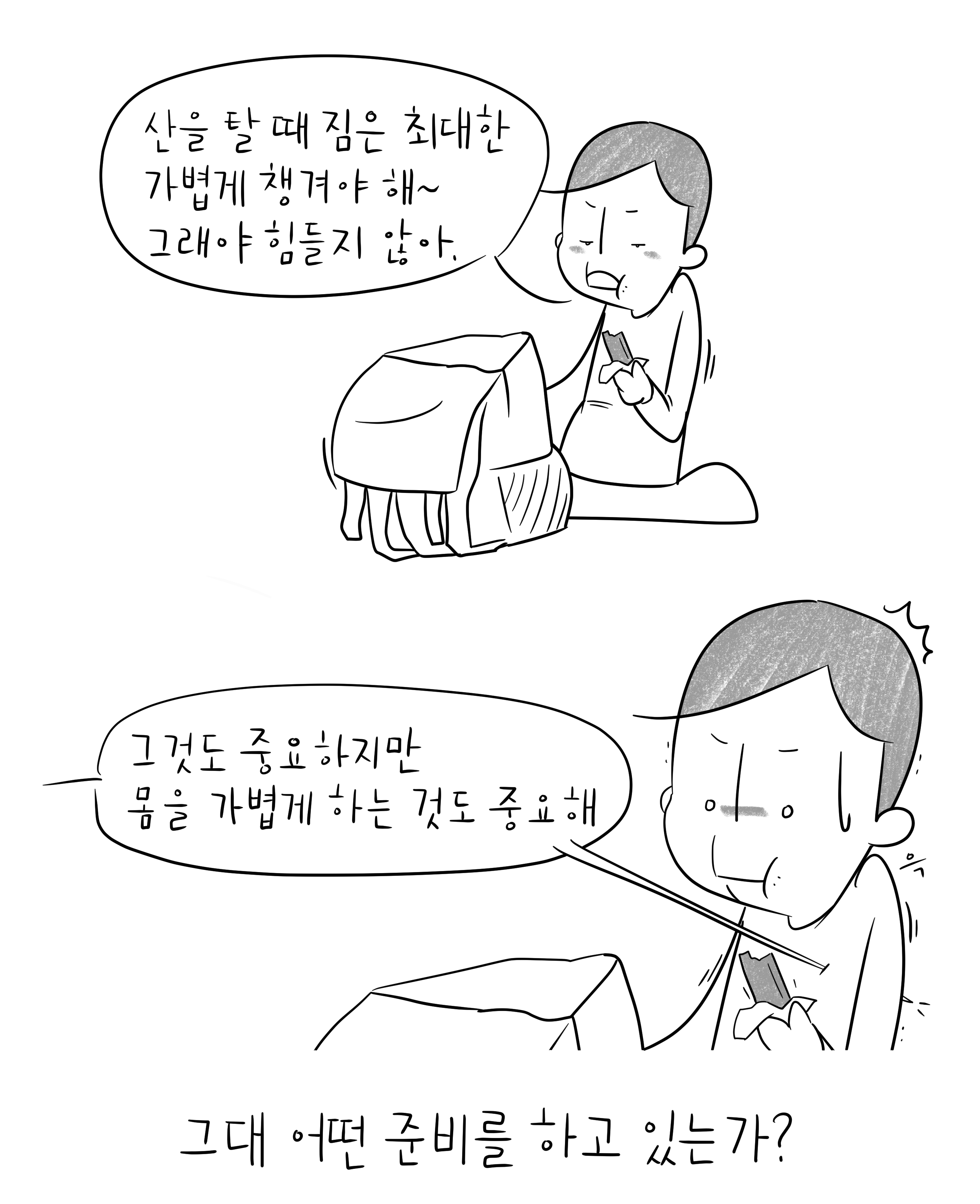 "산을 탈 때 짐은 최대한 가볍게 챙겨야 해